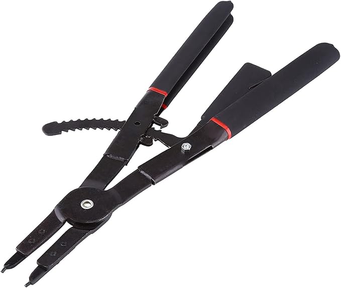 Heavy duty circlip pliers designed for installation and removal of internal and external retaining rings in industrial equipment. Supplied with multiple interchangeable tip angles, enabling access to confined spaces and improving maintenance efficiency.